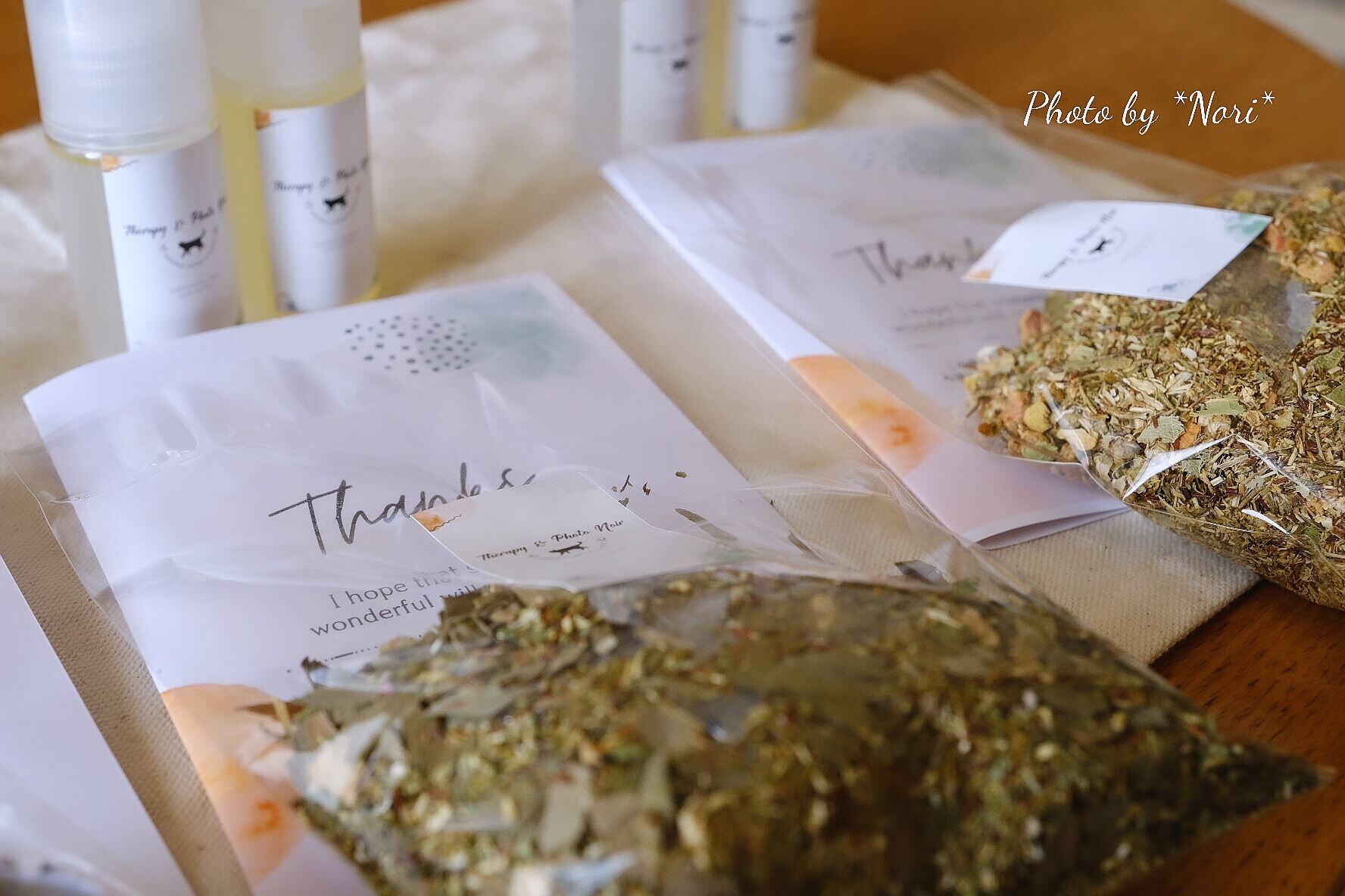 カウンセリング&セッションを受けた後、個々に合わせたハーブティーとアロマミストとオイルを28日間分、お届けします。